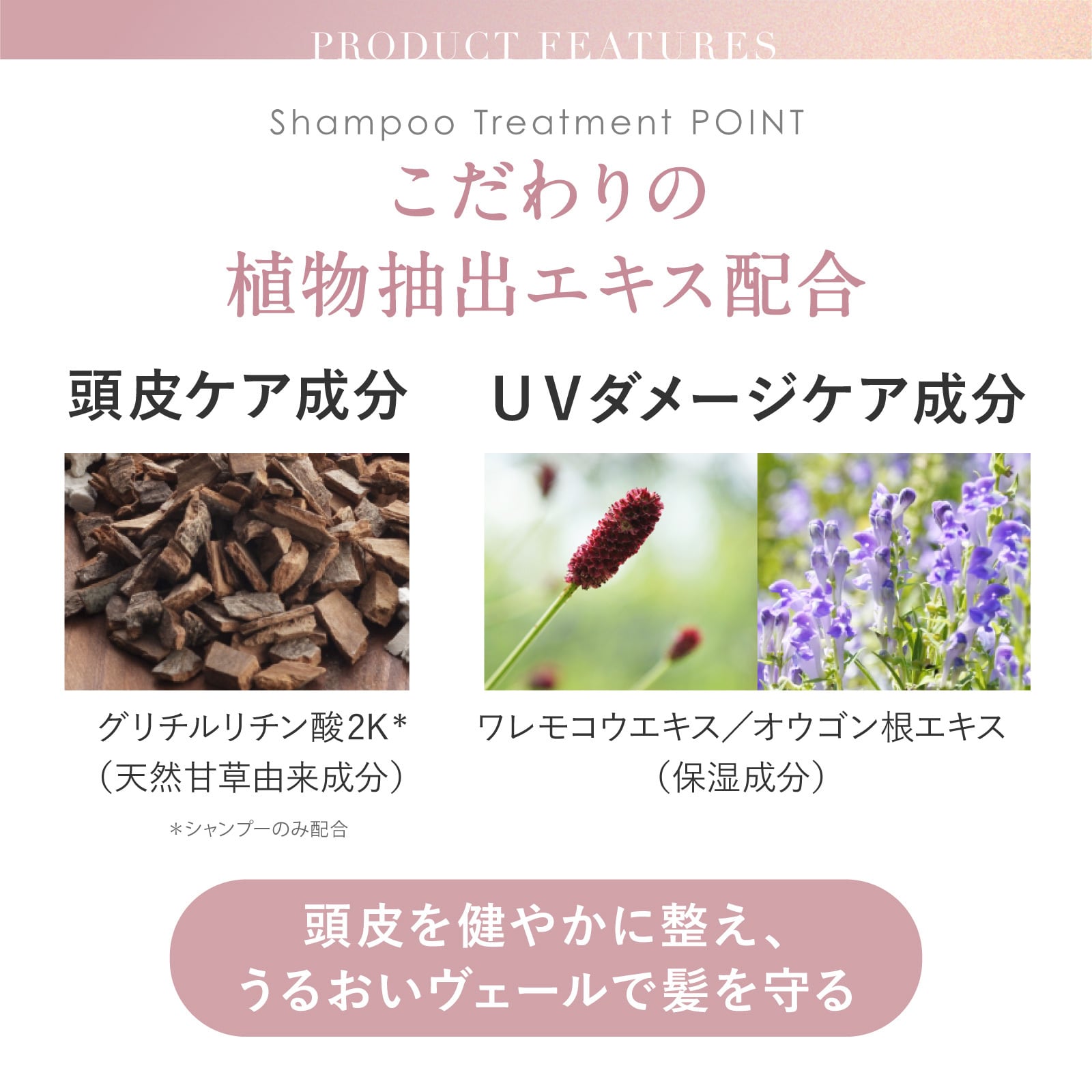 *頭皮ケア成分(グリチルリチン酸2K)を追加配合し、頭皮ケアもしっかり行えます。
