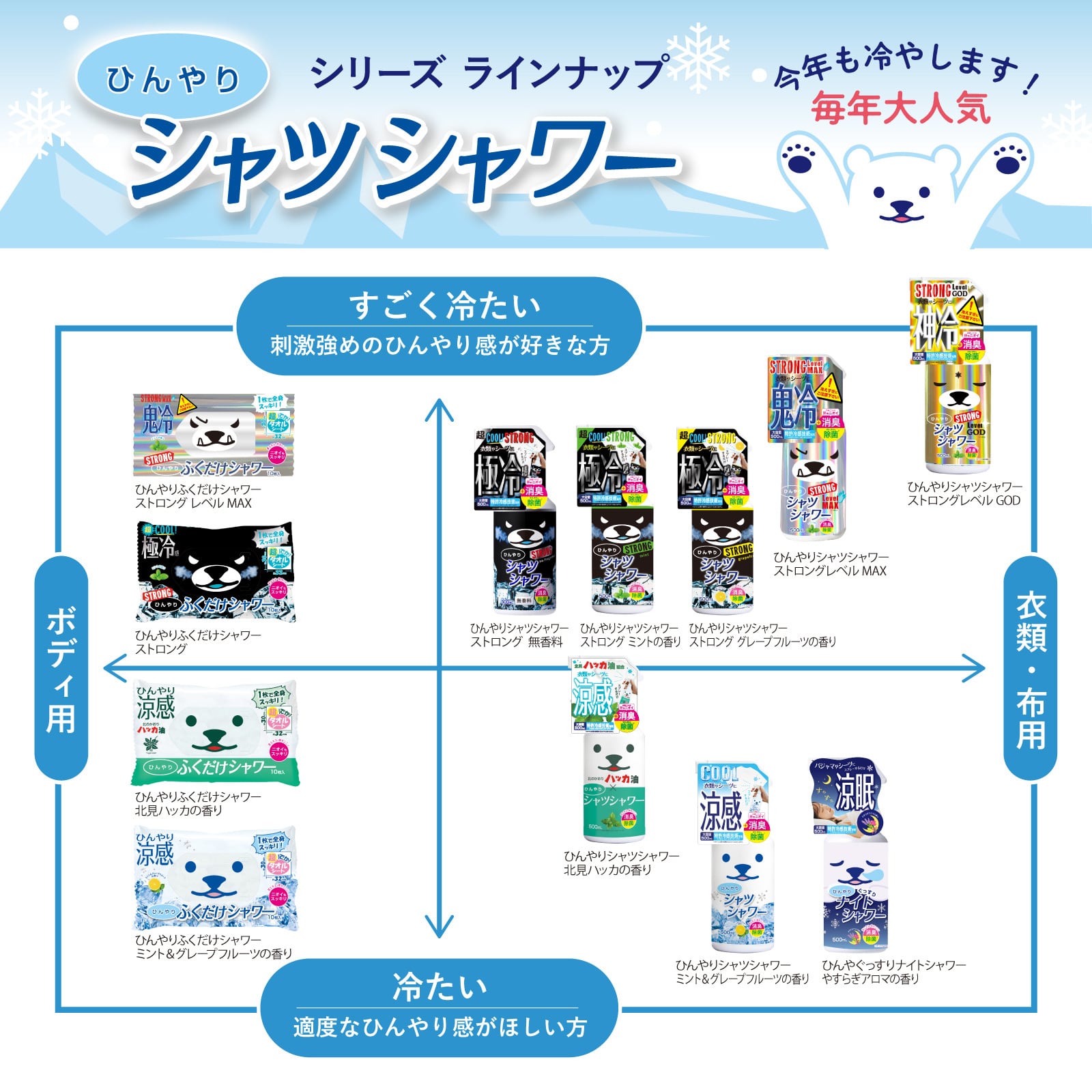 涼感アイテムとして長年ご愛顧頂いております「ひんやりシャツシャワー」。発売から10周年を記念しまして、シリーズ史上最強の鬼冷え感を体感できる「ひんやりシャツシャワー ストロング レベルMAX※」が誕生しました。